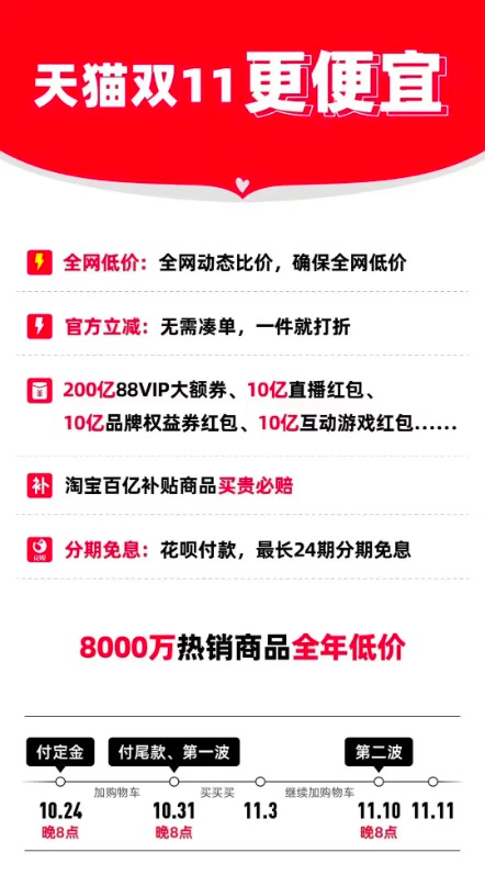 雙11高潮期為 10月23日20點——11月13日24點,