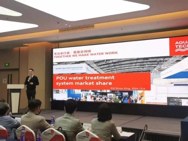 會上銳昂中國總經(jīng)理丁鵬以主題“凈水系統(tǒng)全球市場占有率”發(fā)表了主題演講,分別從凈水水處理系統(tǒng)市場概況、過濾器市場概況、過濾器的區(qū)域洞察三個方面分享了國際凈水市場的現(xiàn)狀和趨勢,并介紹了 Aquatech China 第十六屆亞洲水技術(shù)展覽會(以下簡稱:Aquatech China 水展)在2024年將在原有基礎(chǔ)上創(chuàng)新升級。