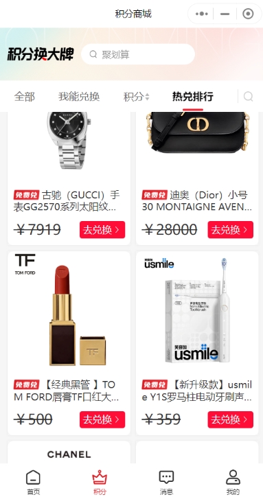 沒錯,你沒看錯,就是大牌!積分免費兌大牌!只要你積分足夠,大牌好物免費兌!