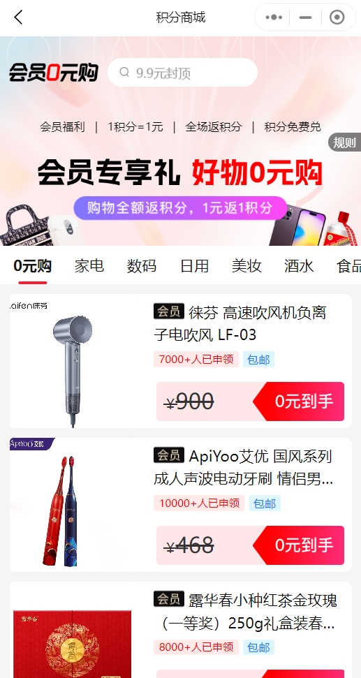 返的積分能免費兌換各種好禮,也就是說你只花了一份錢,不僅購買到你想要的東西,更能額外得到一份等額積分兌換的好物,好物0元搞到手!