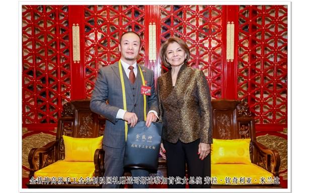 據(jù)悉,2023年哥斯達(dá)黎加首位女總 統(tǒng)勞拉·欽奇利亞·米蘭達(dá)曾在京會(huì)見遲師傅,對(duì)金裁神的西服工藝水平發(fā)出由衷的贊美,評(píng)價(jià)其高端西服定制水準(zhǔn)非同一般。此次,意大利前總理恩里克?萊塔也對(duì)“金裁神”一見鐘情,便足以說(shuō)明一切。