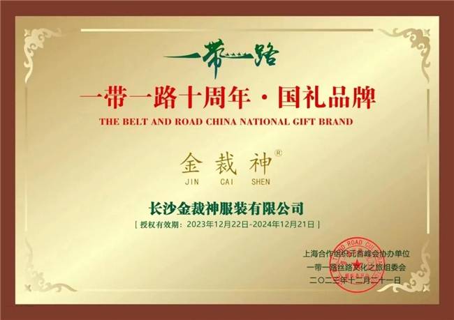 金裁神榮獲“一帶一路十周年?國(guó)禮品牌”