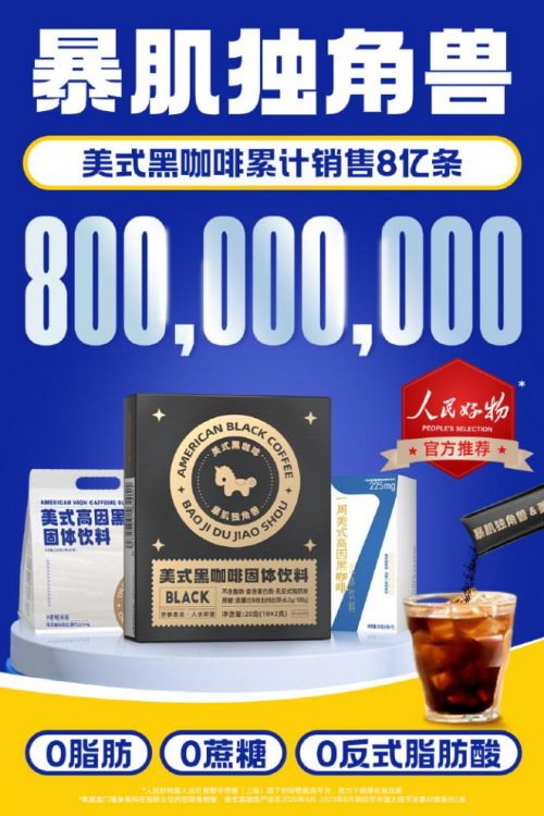 在中國咖啡市場持續(xù)增長的背景下,去年的暴肌獨角獸憑借其出色的產品品質和創(chuàng)新的營銷策略,成功解鎖新成就——美式黑咖啡銷量破8億條。這一成績的取得,不僅代表了品牌8年以來的沉淀與積累,更彰顯了其在健康食品領域的領 先地位。