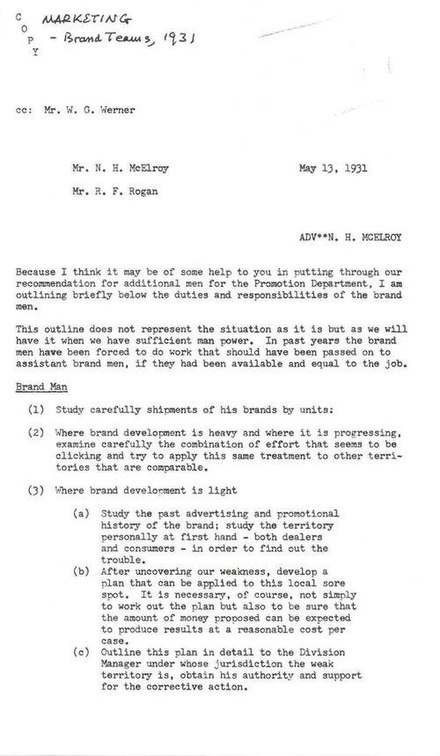 麥克爾羅伊請求建立品牌經(jīng)理制的備忘錄