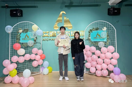 (左:艾唱歌手培訓翁向晴老師 右:艾唱歌手培訓優(yōu)秀學員李華碩)