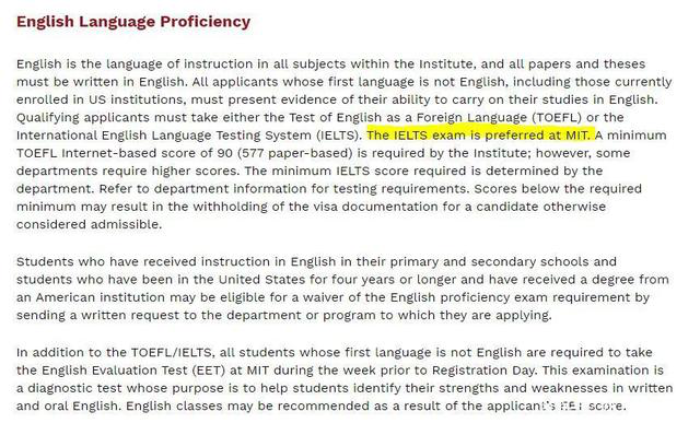 其中既包含那些top級的私立名校,例如以哈佛、耶魯為代表的常青藤盟校,也有越來越多偏愛雅思的院校。像MIT(麻省理工學院),其部分專業(yè)甚至表示不認托福成績,只接受雅思成績。