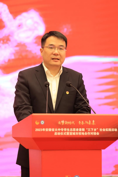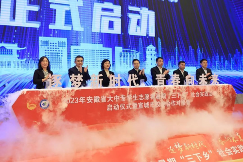 為深入貫徹落實關(guān)于做好新時代人才工作的重要思想,進(jìn)一步深化校地合作,集聚和培育更多青年人才,4月24日,2023年安徽省大中專學(xué)生志愿者暑期“三下鄉(xiāng)”社會實踐活動啟動儀式暨宣城市校地合作對接會在宣城舉行。宣城市委書 記李中,團(tuán)省委書 記陳明生,團(tuán)省委副書 記竇賢琨,省文明辦副主任王芳,宣城市委常委、組織部長朱立軍,宣城市政 府副市 長汪侃,省委宣傳部、省教育廳等有關(guān)部門領(lǐng) 導(dǎo)出席活動。省內(nèi)高校團(tuán)委、就業(yè)部門負(fù)責(zé)同志,長三角高校教師、學(xué)生代表,宣城市市直、各縣市區(qū)相關(guān)單位負(fù)責(zé)人,共370余人現(xiàn)場參加會議?;顒油竭M(jìn)行了網(wǎng)絡(luò)直播,觀看人次超過330萬。