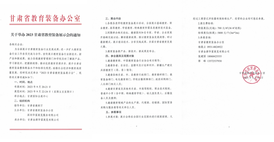 9月22-24日,2023甘肅省教育裝備展示會(huì)誠(chéng)摯邀請(qǐng)全國(guó)各地各類(lèi)教育裝備企業(yè)齊聚蘭州,共享甘肅教育市場(chǎng)無(wú)限商機(jī)!