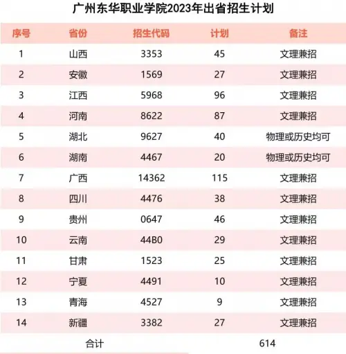 2023年廣州東華職業(yè)學(xué)院面向廣東省招生計(jì)劃