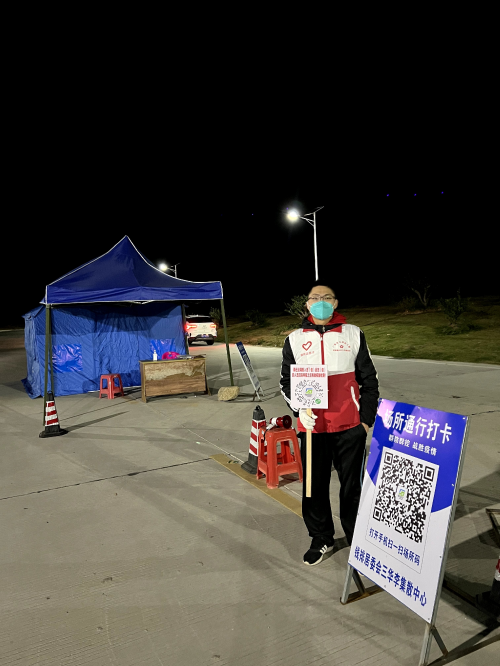抗擊疫情勇?lián)?dāng),他是鄉(xiāng)村逆行者。2022年底,在全國抗擊新冠疫情時期,廣東省茂名信宜被列為高風(fēng)險地區(qū),他主動請纓奔赴抗疫一線,聯(lián)系當(dāng)?shù)卣?府并遞交了請戰(zhàn)書,在得到當(dāng)?shù)卣?府的同意后,他積極投身于家鄉(xiāng)的疫情防控工作當(dāng)中。從社區(qū)的駐街單位到高速收費路口,他對每一位流動人員進行登記、測量體溫、詢問居住地和外出史等,一旦發(fā)現(xiàn)發(fā)熱患者,立馬轉(zhuǎn)接給現(xiàn)場的醫(yī)護人員,每天10個小時的站崗是他不變的堅守。一天工作結(jié)束之后,在臨時搭建的帳篷中,他在地上打個地鋪將就著就能對付一晚,剛合眼沒多久又要投入到第二天繁重的工作中,條件艱苦任務(wù)繁重,即使如此,他也毫無怨言。正如他在請戰(zhàn)書上這樣寫道:“我是青年,我先行”。正是在這樸實的信念的指引下,他始終將初心鐫刻在疫情防控第 一線,能為全鎮(zhèn)七萬多人民群眾筑牢“疫情防護墻”中無私貢獻自己的一份力量,他感到十分光榮。