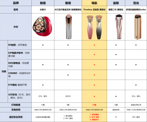 外觀設計上,五款美容儀造型各不相同,風格各異(見上圖)。