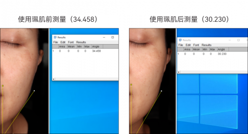 效果:EMS微電流快速提拉,使用前后效果(V臉角度變化)