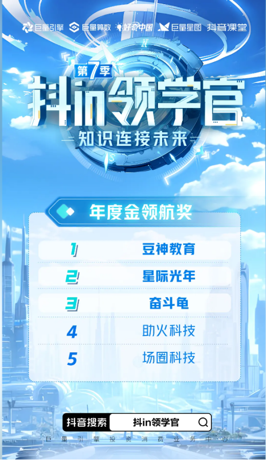 日前,以“讓知識(shí)發(fā)光”為主題的2024巨量引擎教育Future知識(shí)生態(tài)大會(huì)在三亞成功舉辦。憑借出色的行業(yè)表現(xiàn),豆神教育從眾多品牌中脫穎而出,榮獲巨量引擎2023年度抖in領(lǐng)學(xué)官“金領(lǐng)航獎(jiǎng)”。