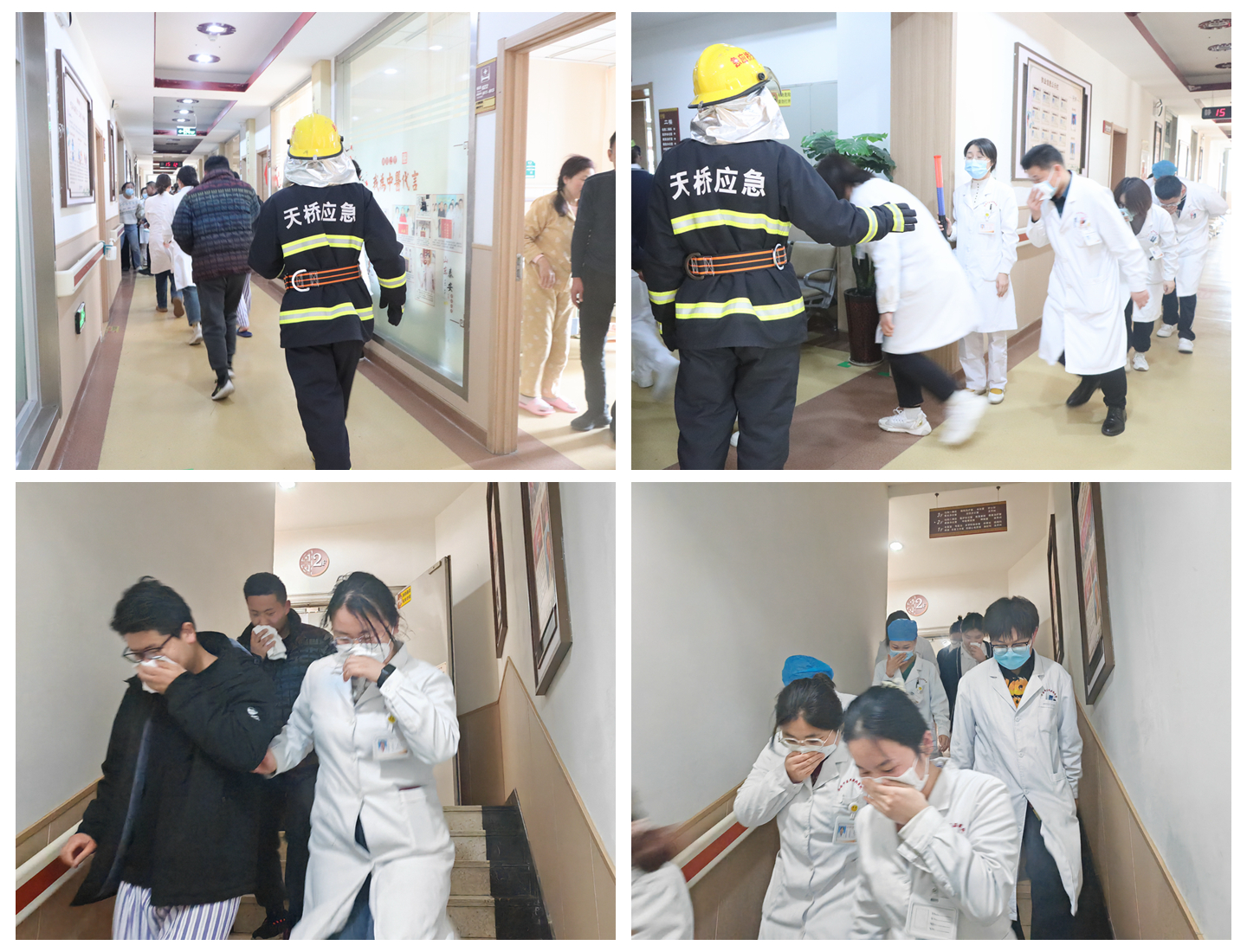 演練正式開始。以住院患者在走廊吸煙引燃易燃物突發(fā)火情為背景,值班護士立即按下距離最近的火災報警按鈕,向總值班人員報告警情,切斷電源,撥打119電話向消防救援部門請求支援。接到火情報告后,值班室立即啟動《醫(yī)院消防安全應急預案》,滅火組第 一時間撲滅初期火災,火情得到控制。各崗位人員接到通知后迅速在指定崗位待命,聽從指令,有條不紊地沿著安全出口成功疏散撤離住院患者。