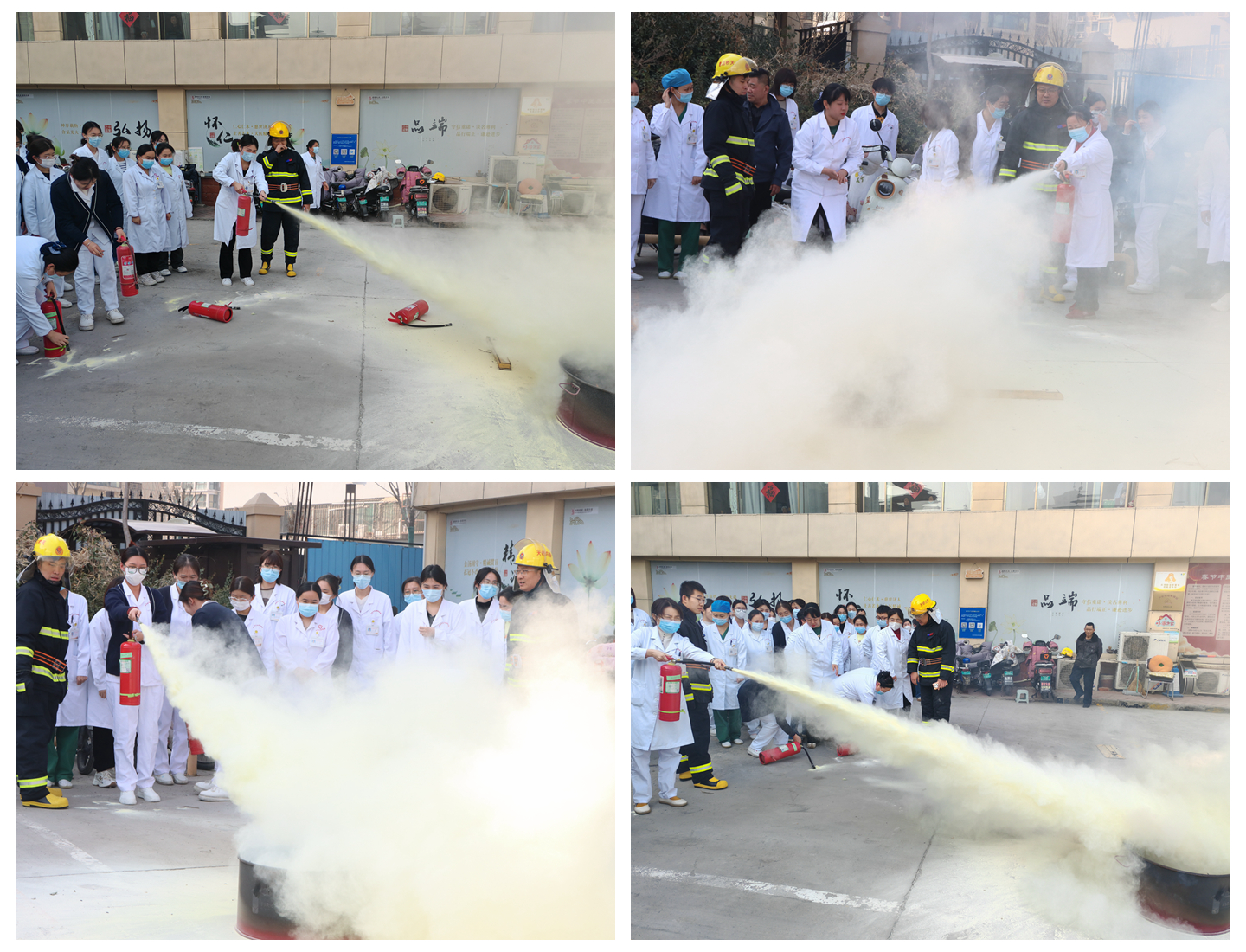演練結束后,在門診樓前,組織全體醫(yī)務人員依次進行滅火器、消防栓實操演習考核。