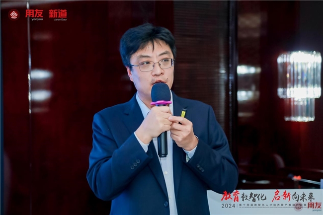 用友網(wǎng)絡(luò)股份有限公司U9 cloud實(shí)施總監(jiān)楊運(yùn)良就“數(shù)智時(shí)代人才需求與培養(yǎng)——數(shù)智化工程師成長(zhǎng)之路”發(fā)表演講。他分享了企業(yè)數(shù)智化轉(zhuǎn)型所需的人才能力模型,人才培養(yǎng)模式和U9 cloud實(shí)施策略的全面視角,強(qiáng)調(diào)了教育和培訓(xùn)在滿足企業(yè)對(duì)數(shù)智化人才需求中的重要作用。