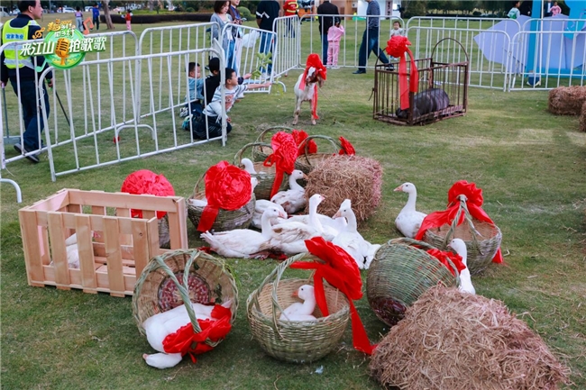 在激烈的賽事間隙,浙江衛(wèi)視經(jīng)典節(jié)目《我愛記歌詞》瞬間點燃了現(xiàn)場氛圍!互動環(huán)節(jié)的“猜歌詞”等趣味游戲輪番登場,觀眾們踴躍參與,歡呼聲此起彼伏。掃碼抽獎環(huán)節(jié)更將氣氛推向高潮——多位幸運觀眾斬獲江山特色好禮,驚喜連連!冠軍的“帶紅花的?!?、亞軍的“帶紅花的豬”、季軍的“帶紅花的羊”,這些極具江山特色的獎品,更是以其獨特創(chuàng)意成為全場焦點。