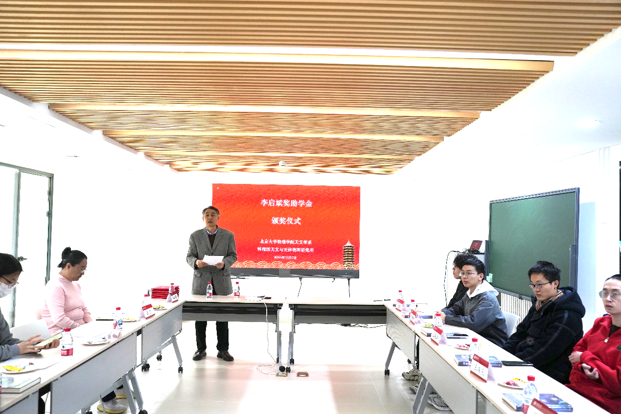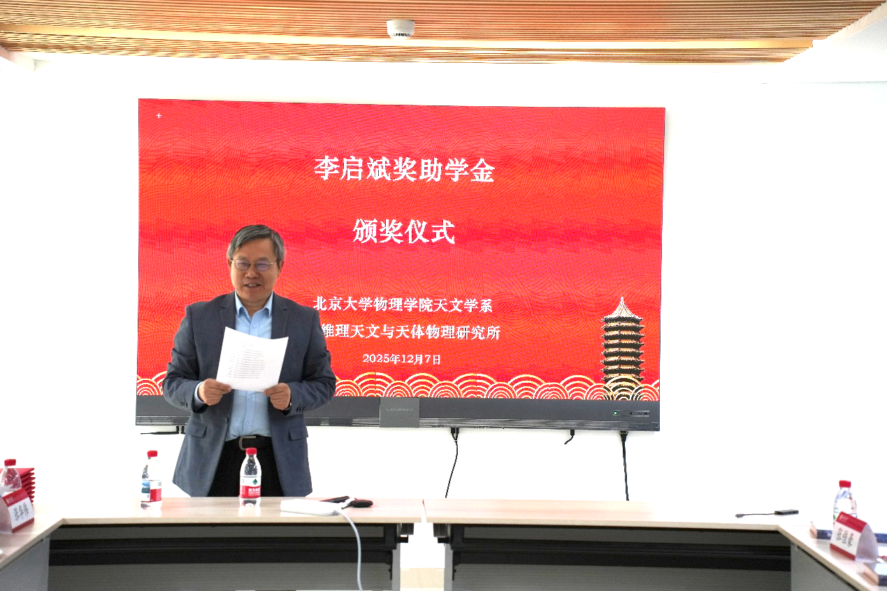 2025年12月7日,2025年度第二屆“李啟斌獎助學(xué)金”頒獎儀式在北京大學(xué)科維理天文與天體物理研究所舒琦會議室舉行?!袄顔⒈螵勚鷮W(xué)金”是李啟斌基金會理事長李亦非女士(李啟斌先生長女)于2024年10月向北京大學(xué)教育基金會捐資設(shè)立的。