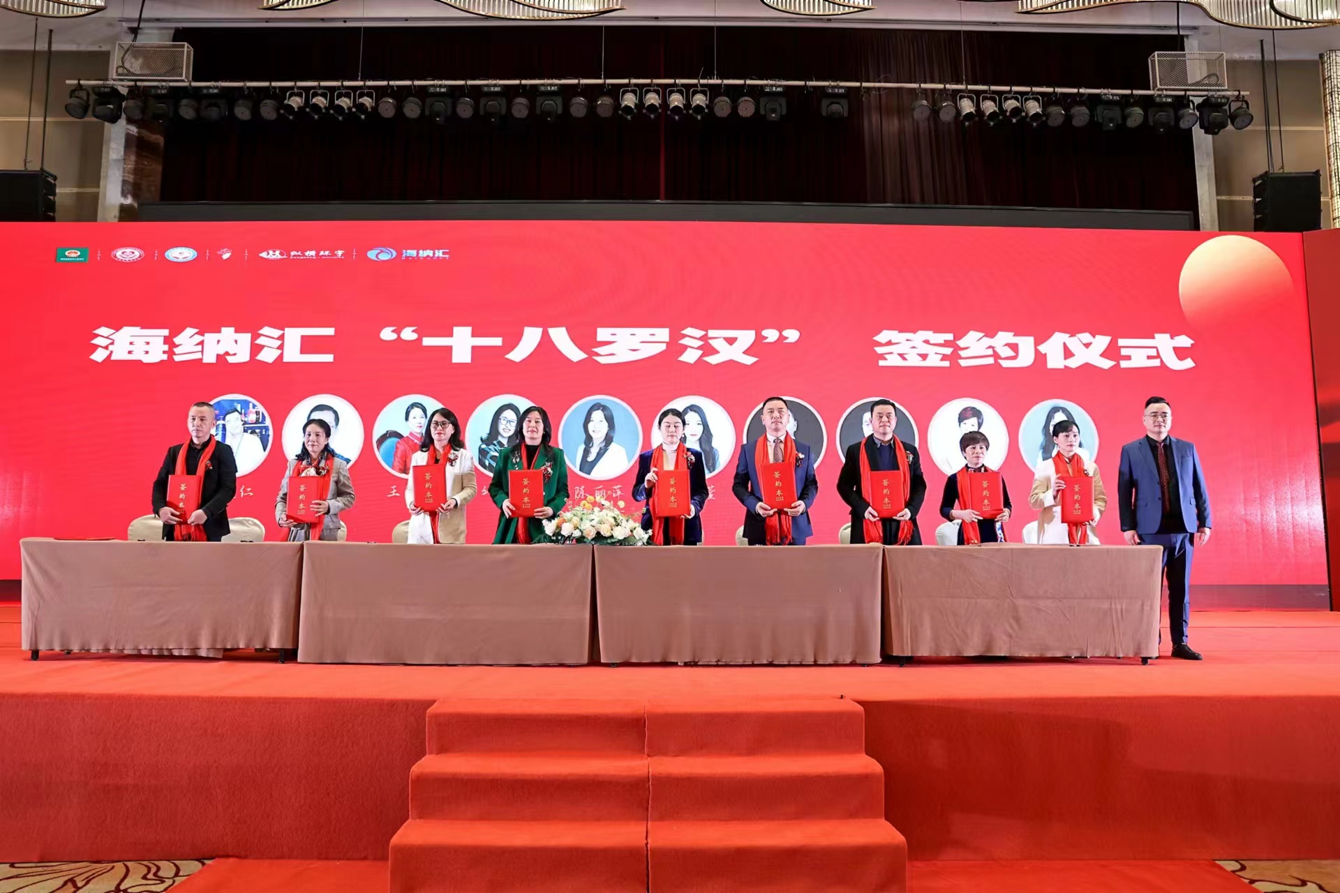 本次活動(dòng)的協(xié)辦單位海納匯(福建)文化傳播有限公司CEO賈茗豪先生率領(lǐng)創(chuàng)始股東“18羅漢”登場(chǎng)進(jìn)行簽約和授刀儀式。