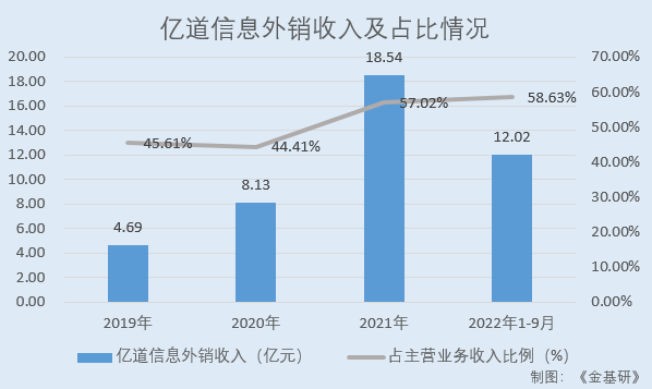 2019-2021年及2022年1-9月,億道信息主營業(yè)務(wù)收入中,外銷收入分別為4.69億元、8.13億元、18.54億元、12.02億元,占比分別為45.61%、44.41%、57.02%、58.63%。