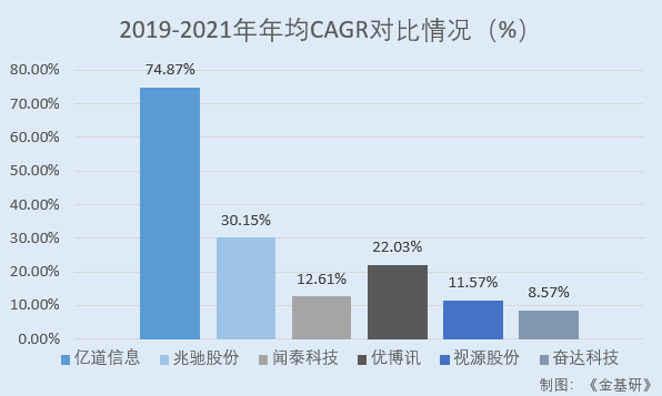 值得一提的是,營業(yè)收入增長率是評價企業(yè)成長狀況和發(fā)展能力的重要指標(biāo),而億道信息2019-2021年營業(yè)收入復(fù)合增長率“領(lǐng)跑”同行,凸顯其成長性。