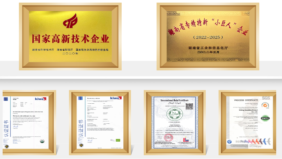 公司目前加工的植物提取物,均為純天然的抗氧化劑產(chǎn)品,已廣泛應(yīng)用于食品、醫(yī)藥、保健品、化妝品等領(lǐng)域,取得良好的經(jīng)濟(jì)效益與社會(huì)效益。近年來(lái)公司開(kāi)展數(shù)十項(xiàng)科研項(xiàng)目開(kāi)發(fā),項(xiàng)目涵蓋迷迭香品種培育、活性物提取分離、提取物替抗應(yīng)用。已獲得多項(xiàng)知識(shí)產(chǎn)權(quán)與榮譽(yù)資質(zhì),包含國(guó)家高新技術(shù)企業(yè)、湖南省專精特新中小企業(yè)、湘西州農(nóng)業(yè)產(chǎn)業(yè)化龍 頭企業(yè)。