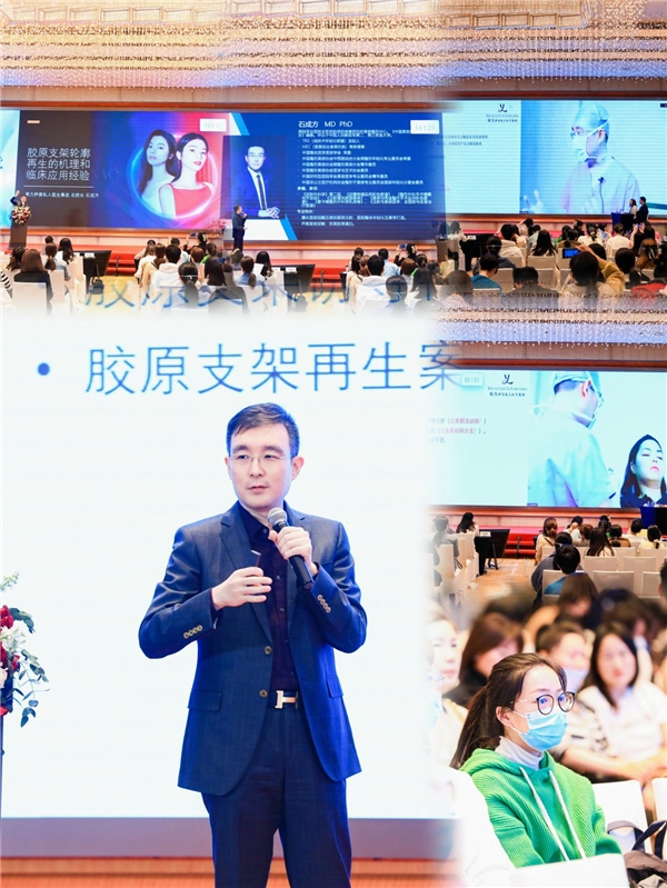 在此次學(xué)術(shù)會(huì)議上石成方院長詳細(xì)闡述了櫻花膠原支架作為組織工程醫(yī)學(xué)支架材料,能夠引導(dǎo)細(xì)胞到預(yù)定位置、給工程化組織限定一定的空間、引導(dǎo)組織再生,并且為特定的細(xì)胞提供結(jié)構(gòu)支撐作用、抗擊壓力等外力,在面部維持組織形狀等功能。