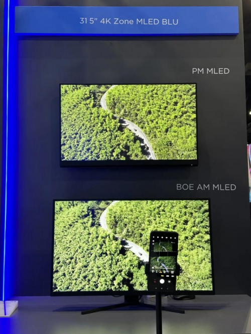 現(xiàn)場京東方展示了行業(yè)領(lǐng) 先的163英寸P0.9 LTPS COG MLED顯示產(chǎn)品,具有無界顯示、超高畫質(zhì)、健康護眼三大特點,該產(chǎn)品采用GIA設(shè)計和全新側(cè)邊技術(shù)實現(xiàn)零邊框無界拼接,大屏觀看視覺效果更具沖擊力,同時以京東方自研的像素級PAM+PWM驅(qū)動模式帶來極具沖擊力的超高畫質(zhì)和無閃爍的健康護眼顯示效果,無論是演播室大屏還是家庭影院娛樂場景,都能完美滿足消費者對品質(zhì)和臨場體驗感的卓越追求。值得注意的是, 京東方還帶來了搭載4K分區(qū)的31.5英寸主動式COG MLED背光顯示產(chǎn)品,不僅可實現(xiàn)2500nit超高亮度、DCI & Adobe雙100%色域和百萬級對比度的自然飽滿色彩顯示效果,還支持144HZ/240HZ高刷新率,同時滿足專業(yè)設(shè)計創(chuàng)作與電競游戲場景的高品質(zhì)需求。目前,京東方玻璃基主動式MLED產(chǎn)品已全面實現(xiàn)量產(chǎn),并通過MLED業(yè)務(wù)生態(tài)的高效整合加快全產(chǎn)業(yè)鏈創(chuàng)新,廣泛應(yīng)用于聯(lián)想、康佳、創(chuàng)維等國內(nèi)外一線品牌。