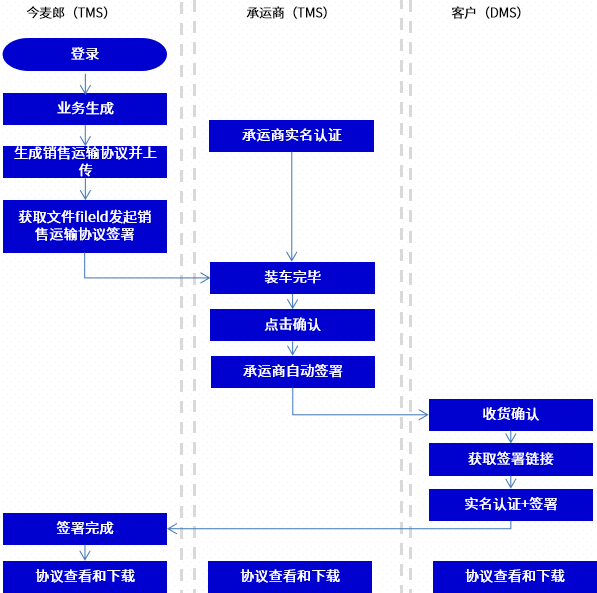 而今麥郎在企業(yè)的運(yùn)輸管理系統(tǒng)中集成了法大大后,承運(yùn)商便可以在系統(tǒng)中提前設(shè)置自動(dòng)簽署,司機(jī)裝車完畢后點(diǎn)擊確認(rèn)即可發(fā)車。同時(shí),司機(jī)也無需再隨身攜帶紙質(zhì)文件,到達(dá)目的地后直接與經(jīng)銷商/倉庫在線確認(rèn),真正有效地避免了因文件遺失引發(fā)的各類問題。