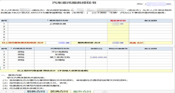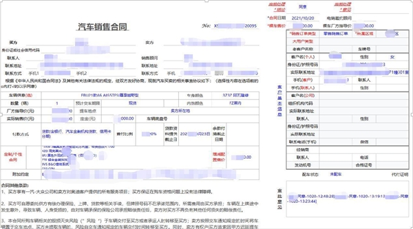 新車銷售合同包括三部分:整車銷售合同,增值產(chǎn)品銷售合同,委托服務(wù)合同。在合同上順帶對客戶信息進(jìn)行完整詳細(xì)登記。