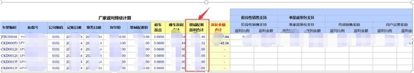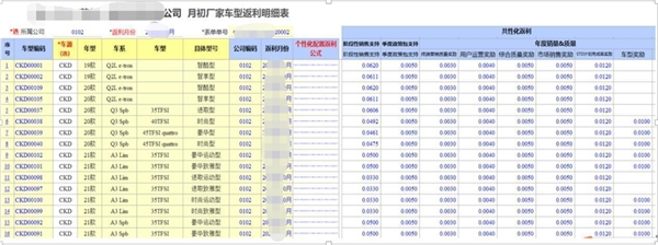 2) 按月、按店、按車型維護(hù)實時預(yù)估車型月度返利表。