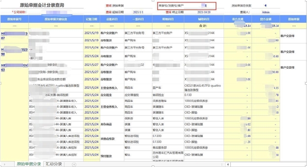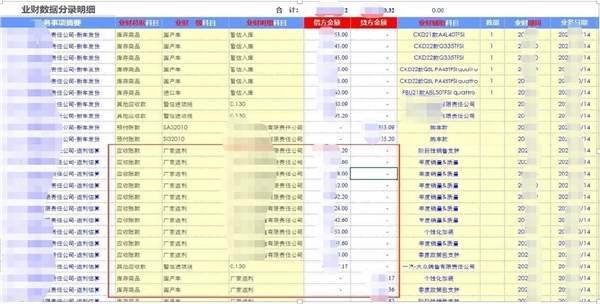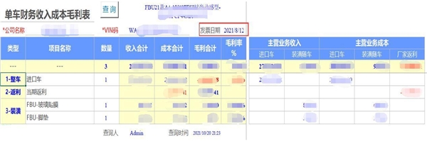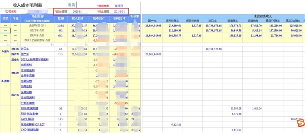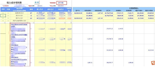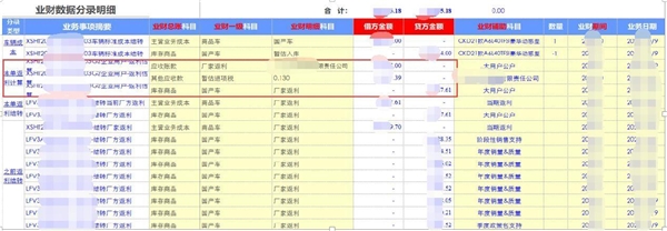 這上面每臺車的收入成本和毛利數(shù)據(jù),都是直接來源于系統(tǒng)中的會計分錄。
