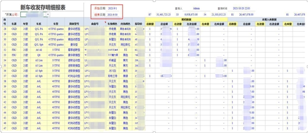 9. 任意時間段新車收發(fā)存報表及車輛庫齡表。