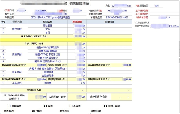 這里是一臺車銷售結(jié)案的標(biāo)志,這臺車所有相關(guān)聯(lián)的業(yè)務(wù),都集中在這里生成會計分錄。包括以下部分: