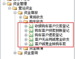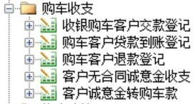 2)客戶交款環(huán)節(jié)。 客戶交款登記(含二手車置換),貸款到賬登記,客戶退款登記,客戶誠意金收支,客戶誠意金轉(zhuǎn)購車款。