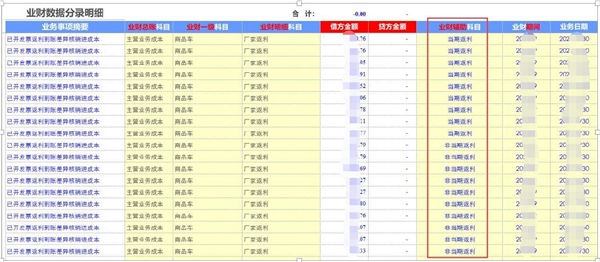 注意:這里主營業(yè)務(wù)成本科目出現(xiàn)當(dāng)期返利和非當(dāng)期返利明細(xì)。