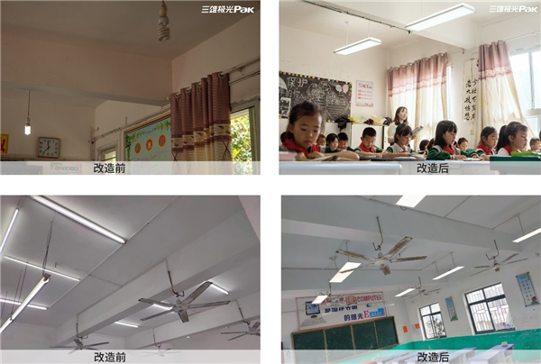 三雄極光“光愛夢想 鄉(xiāng)村教室照明公益改造”行動為鄉(xiāng)村學(xué)校提供優(yōu)質(zhì)LED護眼教室燈及黑板燈,并進行科學(xué)布光,使教室照明環(huán)境照度、均勻度、眩光、顯色、光頻閃等指標(biāo)滿足相應(yīng)標(biāo)準(zhǔn),讓每個孩子都能在護眼燈光的陪伴下健康成長,成就自己的夢想。