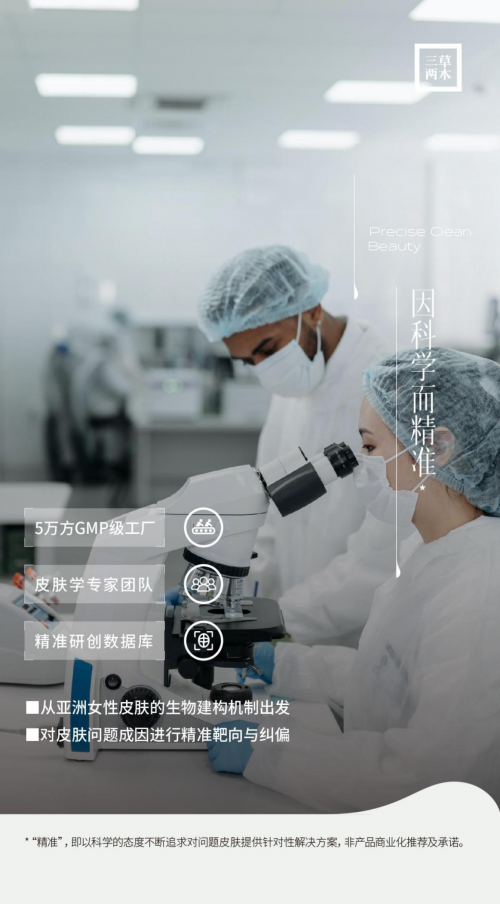 在精準純凈護膚理念的指引下,三草兩木在硬件措施、研發(fā)團隊、配方、服務端口等各個方面進行了全新升級。三草兩木自建GMP級(制藥標準級)的高標準化妝品生產工廠和配方開發(fā)實驗室覆蓋完整的美妝護膚品研發(fā)生產線,致力于打造精準純凈護膚新業(yè)態(tài)。邀請前歐萊雅研發(fā)中心高級科學家、Top新銳品牌創(chuàng)新研發(fā)總監(jiān)陳亮博士擔任品牌研發(fā)合伙人,組建【三草兩木 精準智研型.Lab】,并聯合500強原材料公司首席科學家公平博士、中科院上海生命科學研究院計算機生物學王馥迪博士等業(yè)內權 威專家和高級配方師,對三草兩木產品配方進行科學調制,堅持原料的極簡原則,不堆砌不必要的成分,讓產品更安全、更有效。同時,他們還積極跨界AI數字化智慧科技領域,將AI技術應用于產品研發(fā)過程中,提升產品的精準度和效果。