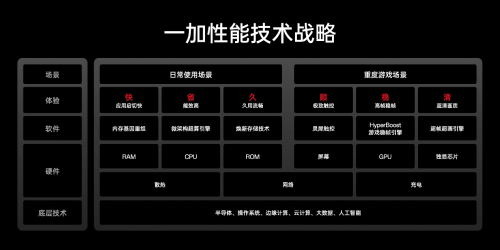 一加 Ace 2 Pro 不僅是天工散熱系統(tǒng)的首發(fā)機(jī)型,也是一加性能技術(shù)戰(zhàn)略下的首款產(chǎn)品。一加借助對(duì)用戶“日常使用”、“重度游戲”兩大場(chǎng)景性能需求的深度洞察,整合“內(nèi)存基因重組”、“微架構(gòu)超算引擎”、“煥新存儲(chǔ)技術(shù)”、“靈犀觸控”、“HyperBoost 游戲穩(wěn)幀引擎”和“超幀超畫引擎”六大技術(shù),形成“流暢鐵三角”和“游戲鐵三角”;并以此為核心,進(jìn)一步整合硬件以及軟件領(lǐng)域的各項(xiàng)子技術(shù),針對(duì)用戶日常使用和重度游戲兩大場(chǎng)景,打造快、省、久、順、穩(wěn)、清的極致體驗(yàn)。