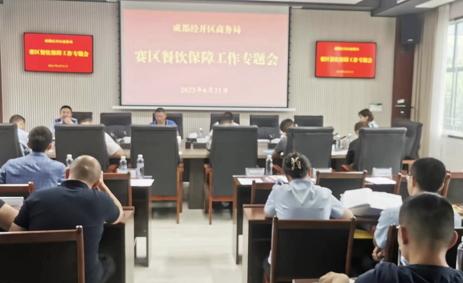 餐飲保障工作,是對食品供應能力、安全監(jiān)管能力的一次重要考驗。成都經開區(qū)商務局、市場監(jiān)管局等單位對此高度重視,召開了“賽區(qū)餐飲保障工作專題會”,統(tǒng)籌推進大運會龍泉驛賽區(qū)開幕式的餐飲保障服務,確保保障工作高效有序地開展。