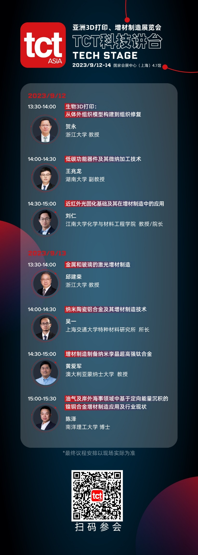為了進(jìn)一步為增材制造技術(shù)發(fā)展注入“源頭活水”,推動(dòng)創(chuàng)新成果轉(zhuǎn)化與市場(chǎng)化的對(duì)接,TCT科技講臺(tái)邀請(qǐng)了國(guó)內(nèi)外眾多知名高等院校、研究院的專(zhuān)家學(xué)者、研究員等擔(dān)任演講者,其中包括浙江大學(xué)、上海交通大學(xué)、湖南大學(xué)、江南大學(xué)、新加坡南洋理工大學(xué)、澳大利亞蒙納士大學(xué)等。