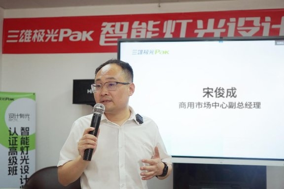 三雄極光商用市場中心副總經(jīng)理宋俊成為此次賦能課程發(fā)表致辭,對經(jīng)銷商照明設計師們的到來表示熱烈歡迎。并表示機遇與挑戰(zhàn)同在,認為在日趨內(nèi)卷的現(xiàn)實環(huán)境下,把握市場趨勢,向智能化方向轉(zhuǎn)型,為消費者提供更專業(yè)的智能照明解決方案,才是真正有效的破局之舉。
