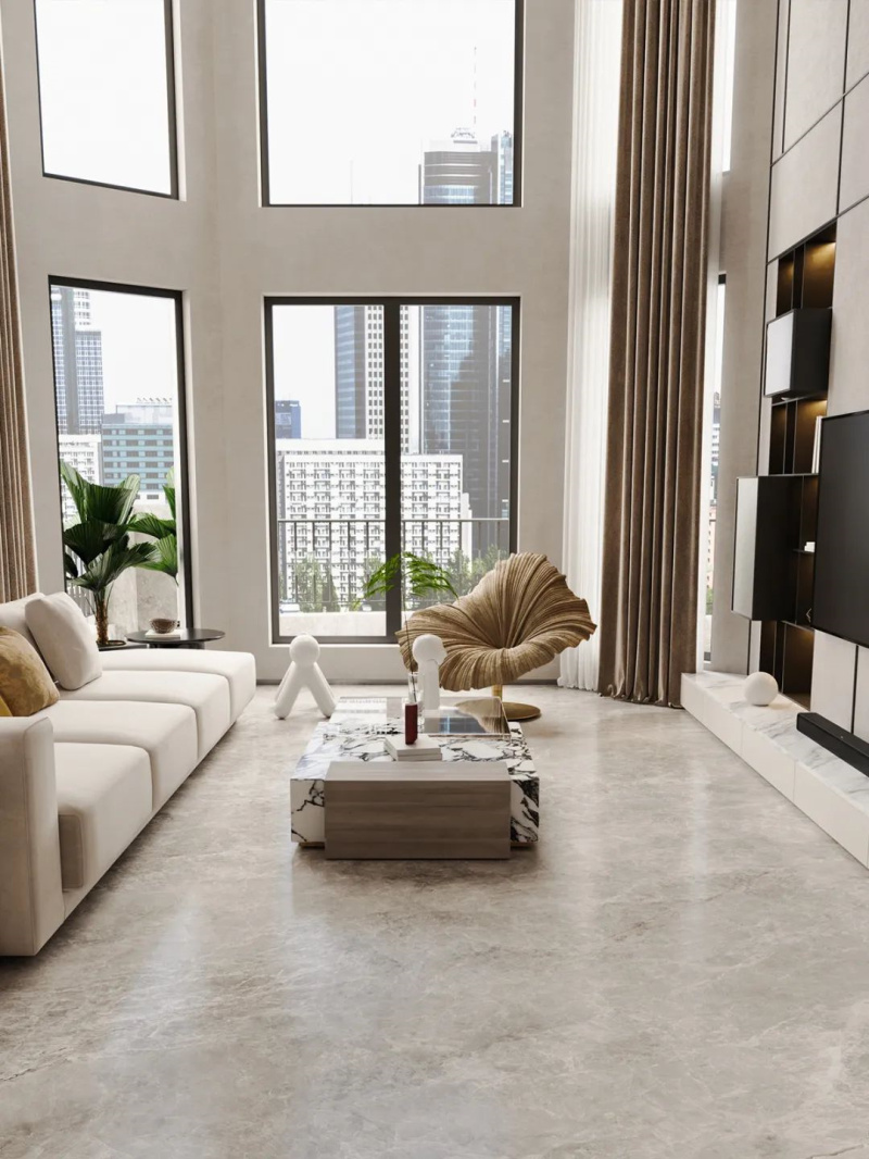 ▲冠珠華珍巖板大宅設(shè)計(jì)案例鑒賞——【客廳地面:滄浪灰】