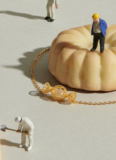2018年開始持續(xù)至今,潮宏基聯(lián)合創(chuàng)新公益組織稀捍行動發(fā)起的“花絲創(chuàng)研駐地項目”,旨在邀請國內(nèi)外的知名藝術(shù)大師、設(shè)計大師駐地潮宏基花絲保護(hù)基地,深入了解東方的花絲工藝及文化背景,以新的設(shè)計視野為傳統(tǒng)手工藝帶來全新的視覺審美。多元的設(shè)計師創(chuàng)新力量,為傳統(tǒng)引入一股全新的設(shè)計風(fēng)向:2019年花絲創(chuàng)研駐地設(shè)計師、日本設(shè)計天才NENDO佐藤大,以非遺工藝創(chuàng)新為依托點,將傳統(tǒng)花絲鑲嵌與甜美可愛的糖果造型結(jié)合,演繹“花絲糖果”系列。2023年,潮宏基攜手駐地設(shè)計師明碩,共同推出“花絲云起”系列,用非遺花絲打造云紋肌理,演繹“閑看云起”的松弛感。