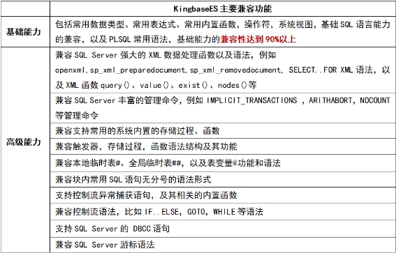 KingbaseES以內(nèi)核兼容為基礎(chǔ),通過(guò)初始化參數(shù)控制,兼容SQL Server數(shù)據(jù)庫(kù),在該模式下支持SQL Server常用功能,兼容程度達(dá)90%以上。