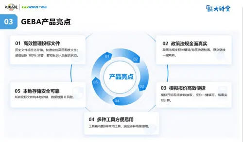 工欲善其事,必先利其器。作為一家數(shù)字化軟件企業(yè),在投標領域,廣聯(lián)達致力于打造便捷化工具,讓投標舒心、放心、安心、省心。借助本次賦能大會,廣聯(lián)達重磅發(fā)布了投標服務GEBA產(chǎn)品。產(chǎn)品圍繞施工企業(yè)投標全過程,重點針對用戶尋找投標底稿時間長、資信文件管理成本高、政策法規(guī)查找慢、模擬報價效率低、投標工具分散使用等問題,提供文件庫、資信庫、知識庫、模擬報價、工具箱等五大功能,以一站式解決方案,提高企業(yè)投標效率。