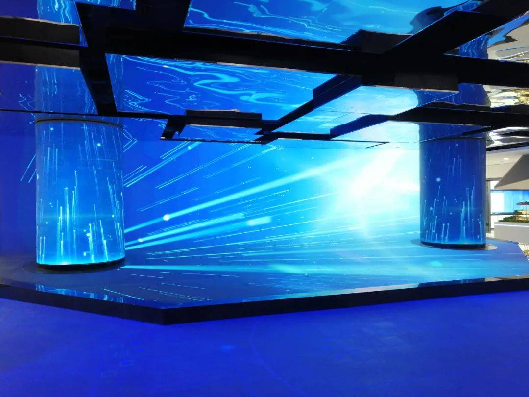 在內(nèi)容塑造上它融入了雄安碳綜合管理中心業(yè)務(wù)布局的信息亮點(diǎn),美輪美奐的顯示效果有效展示當(dāng)前智慧能源領(lǐng)域的前沿技術(shù)成果、應(yīng)用和解決方案。良好的沉浸式范圍塑造,對(duì)往來游客形成深刻印象,體驗(yàn)顯示高科技帶來的視覺震撼。