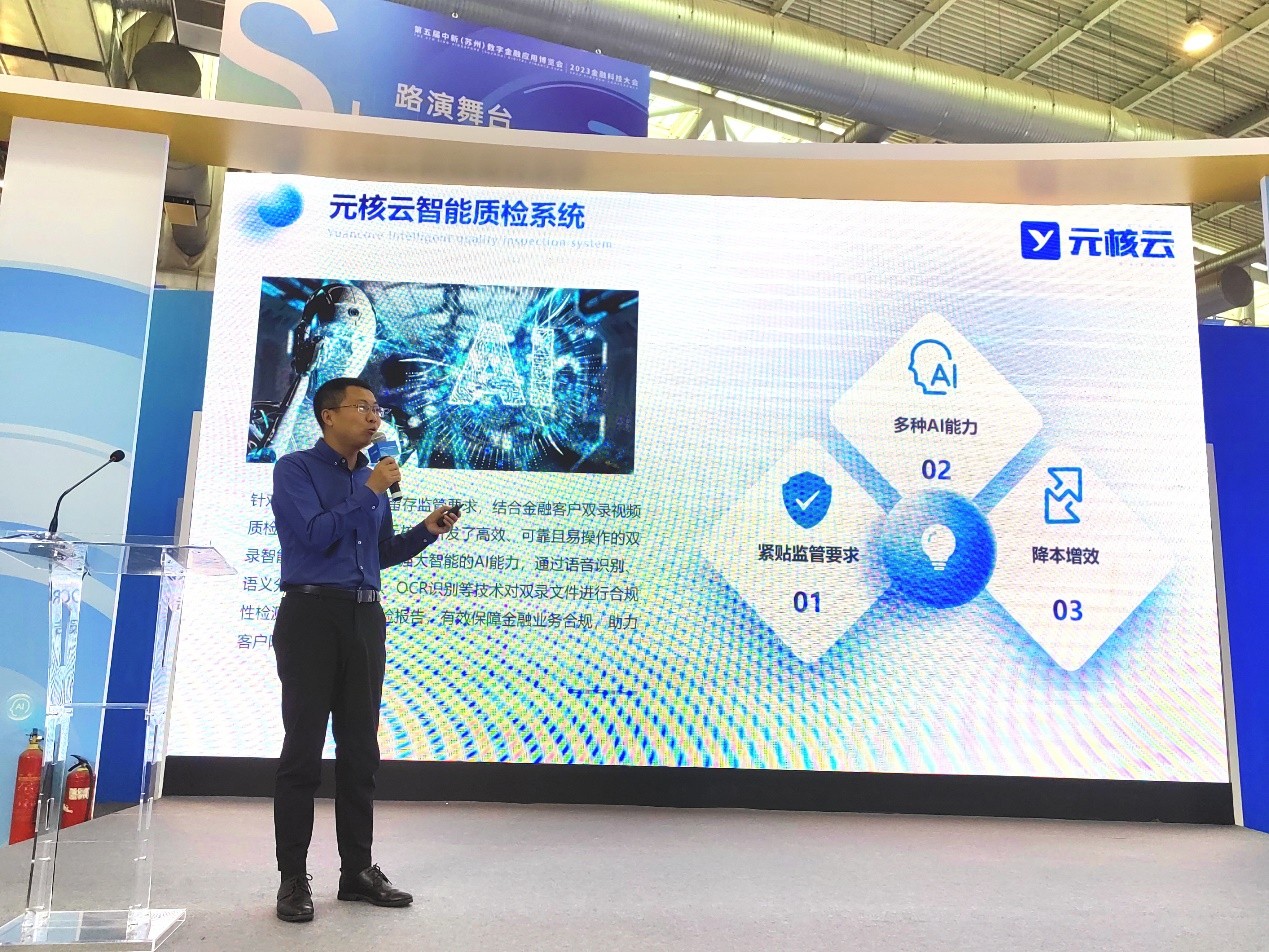 11月初,第五屆中新(蘇州)數(shù)字金融應用博覽會|2023金融科技大會在蘇州國際博覽中心舉辦,圍繞金融科技發(fā)展熱點領域及金融行業(yè)信息科技領域重點工作,分享優(yōu)秀實踐經(jīng)驗,探討數(shù)字化轉(zhuǎn)型路徑與未來發(fā)展趨勢。元核云攜最新研發(fā)產(chǎn)品——元核云智能質(zhì)檢系統(tǒng)亮相此次大會,并在會上發(fā)表重要演講,展示了AI技術在金融視頻質(zhì)檢場景的全新應用成果。