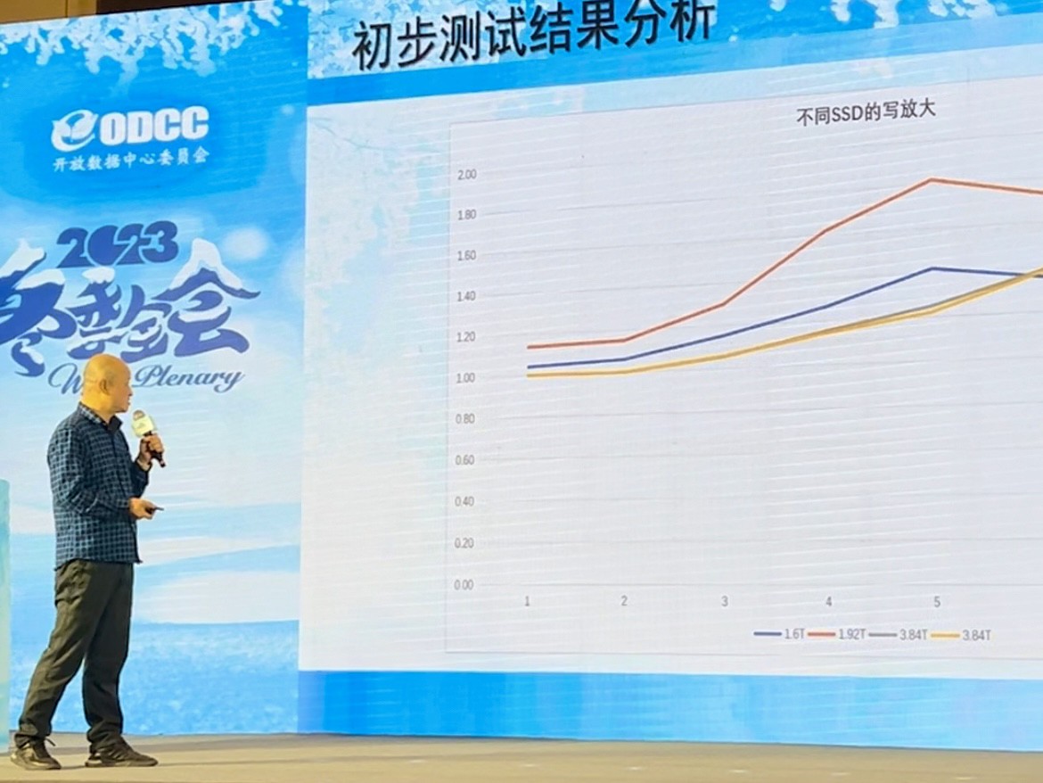新技術(shù)與測試工作組會議由ODCC新技術(shù)與測試工作組組長、中國信通院云大所總工程師郭亮主持。憶聯(lián)高級工程師李軍就SSD寫放大的研究項(xiàng)目做了詳細(xì)介紹。李軍指出,寫放大是隨著主機(jī)寫入數(shù)據(jù)到設(shè)備,設(shè)備還需寫入附加數(shù)據(jù)到媒體,導(dǎo)致實(shí)際的寫入數(shù)據(jù)量大于主機(jī)寫入的數(shù)據(jù)量。由于寫放大對固態(tài)硬盤的壽命和寫入性能產(chǎn)生負(fù)面影響,目前各廠商采用包括OP和TRIM/調(diào)整在內(nèi)的解決方案,但它們都有各自的不足。真實(shí)世界的寫放大是在有文件系統(tǒng)參與的情況下發(fā)生的,對文件順序?qū)戇^程和重復(fù)寫位置都會導(dǎo)致垃圾生成。憶聯(lián)將采用基于文件系統(tǒng)下文件的隨機(jī)讀寫進(jìn)行測試,以更真實(shí)地模擬實(shí)際使用情況,對寫放大展開研究。