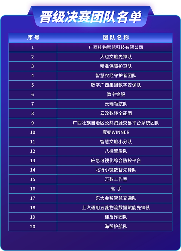 本次入圍決賽的項目具有創(chuàng)新性強、技術水平高的特點,不僅契合廣西數(shù)字產業(yè)發(fā)展的方向,而且能激發(fā)數(shù)據生產要素對經濟社會的放大、疊加、倍增作用,并通過數(shù)字化提升治理能力。項目重點圍繞廣西“促發(fā)展、穩(wěn)民生、擴就業(yè)”方針,廣西地質自然災害、事故災難、公共衛(wèi)生事件、社會安全事件等突發(fā)事件,廣西全面建成世界級旅游目的地,廣西貨運物、物流智能城市規(guī)劃、交通管理、殘障人士出行,北部灣港水上交通風險防范,北部灣港智慧運營服務水平,廣西智慧校園生態(tài)體系建設等方面設計,順應了廣西數(shù)字化發(fā)展浪潮,加快了廣西公共數(shù)據開放創(chuàng)新應用,是建設“數(shù)字中國”的內在要求,是推進數(shù)字化改革的重要舉措,也是促進經濟高質量發(fā)展的必然選擇,相信這些項目在未來都能各自領域上為廣西的發(fā)展提供新的動力和支持。